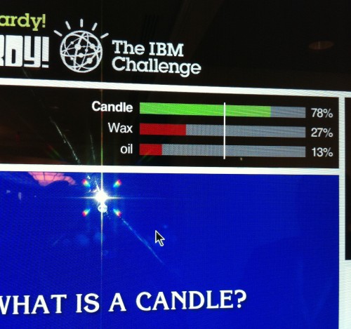 Watson flamed out on the Final round, when it confused the location of the Chicago airports and gave its answer "What is Toronto." Even I got that one right. At the kiosk, I began to see how Watson works: it examines a lot of different possibilities, and then starts adjusting its confidence intervals bit by bit. It looks for patterns, for relevance, for data relationships; not unlike what your typical BI analyst does when presented with a mountain of data.